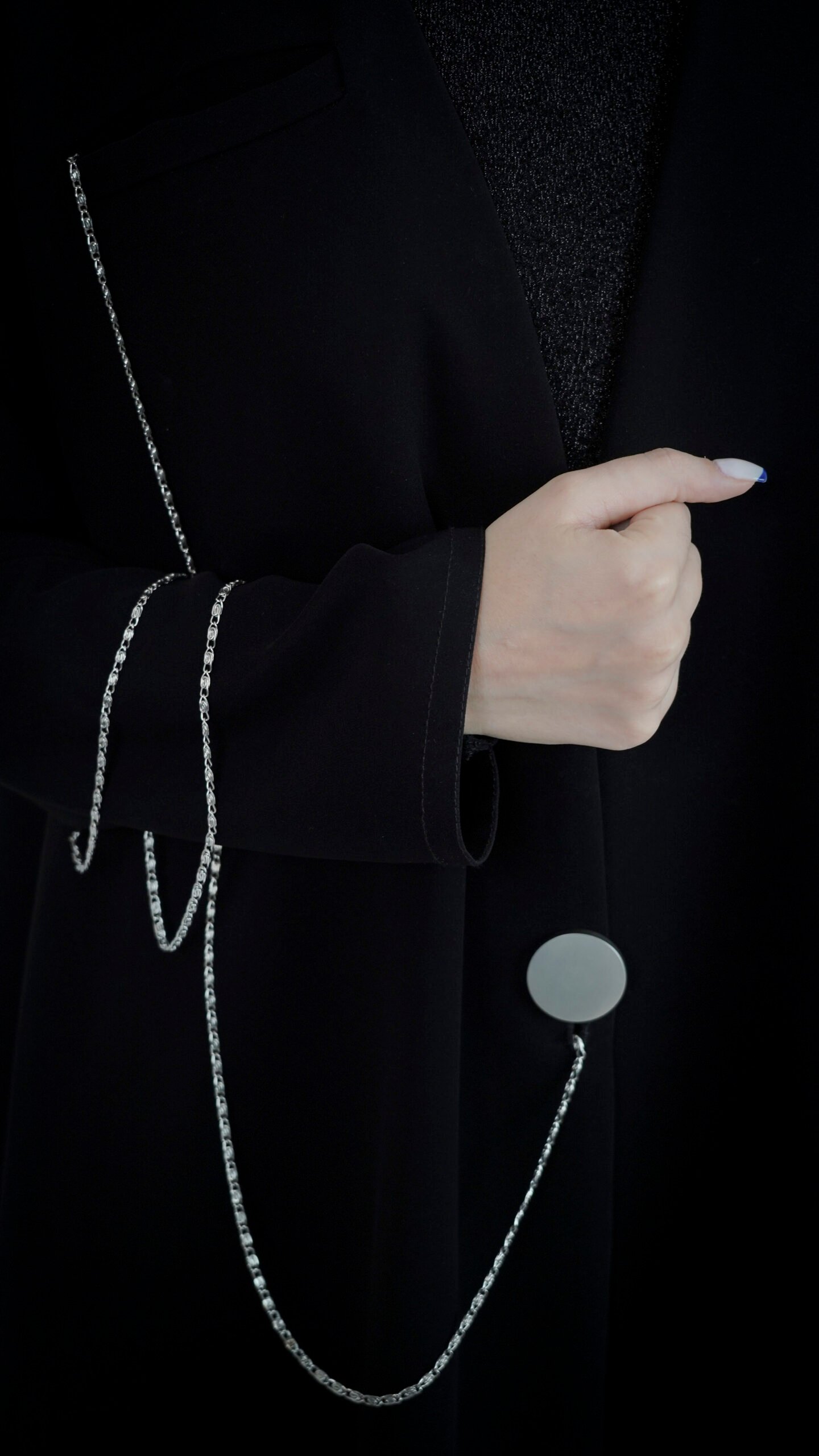 - السلسلة الفاخرة الممتدة من الزر الأمامي تزيد من فخامة التصميم بطريقة بسيطة وراقية.